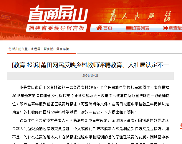 莆田:鄉村教師掛教城區難享職稱評聘優待?