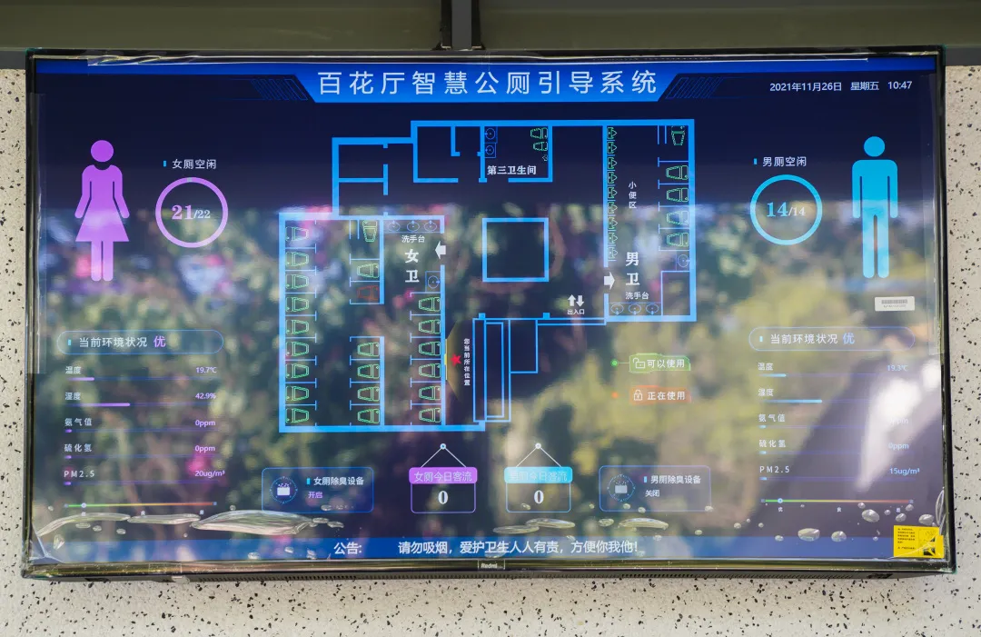 22座公廁全部按照創5A的要求進行提升改造,并且合理設置在各個景點上。以后打開旅游小程序,就能查到附近的公廁,并得到各個公廁占位情況的信息。