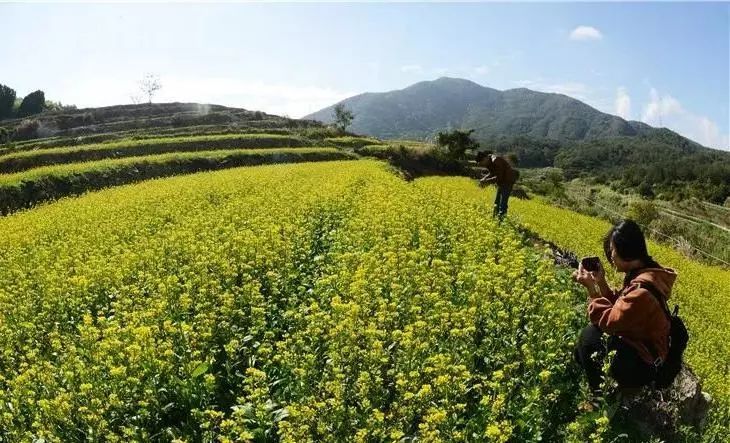 鋤山村的油菜花種植在山腰上的梯田里,油菜花層層疊疊,別有一番美感。
