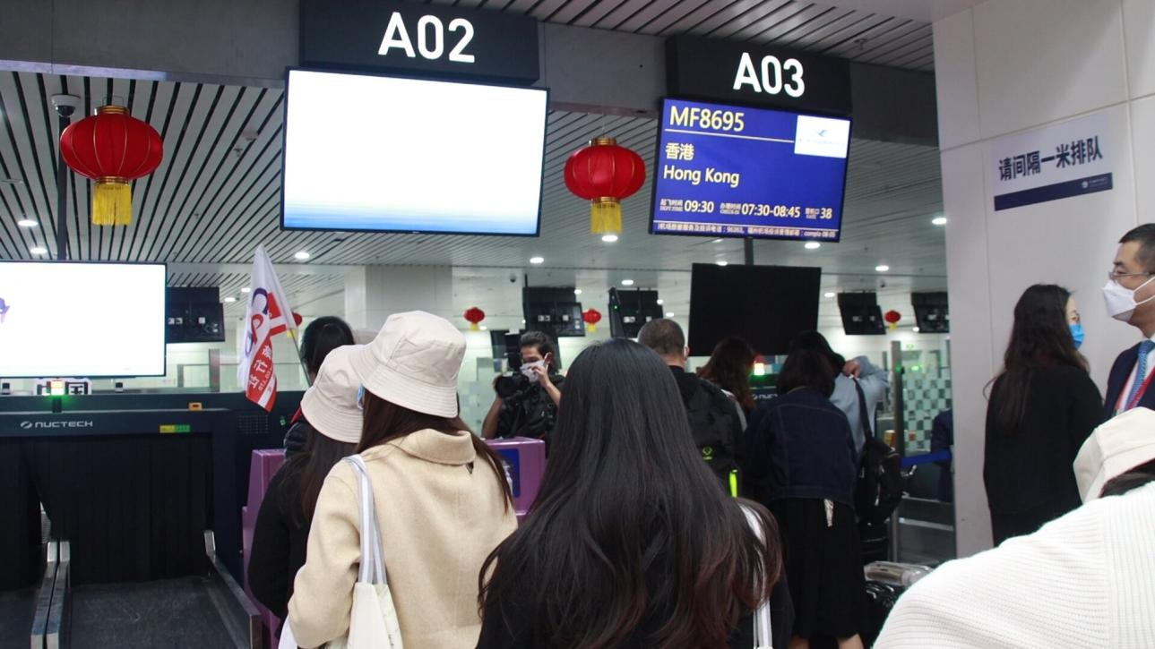 “2023福建省港澳游首發團”出發現場 東南網記者 莊宇婧 攝 據了解,“2023福建省港澳游首發團”的首批游客為建發國旅“香港你好”團,共有42名游客組成。該團從福州出發,行程設計以半自助團隊游為主,旅行團將會帶領游客暢游香港迪士尼樂園,并且還將安排自由活動時間供游客自主安排行程。
