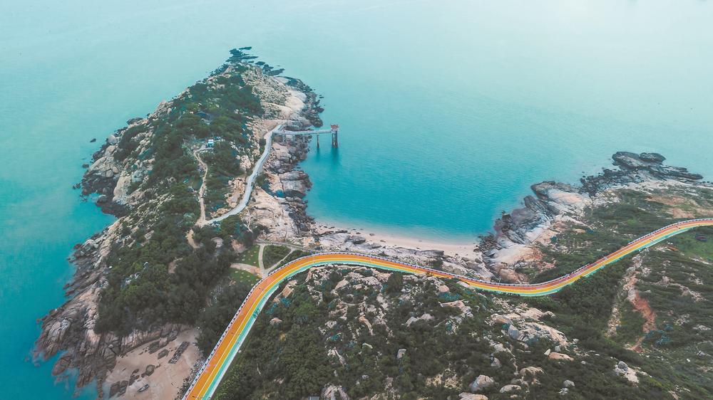輪渡碼頭的風(fēng)雨廊安裝了“彩虹”光伏。 東南網(wǎng)6月8日訊(福建日?qǐng)?bào)記者 張穎 陳旻/文 林熙/圖) 開篇語 6月8日是世界海洋日暨全國海洋宣傳日,今年的主題是“保護(hù)海洋生態(tài)系統(tǒng) 人與自然和諧共生”。近日,自然資源部公布第一屆“和美海島”評(píng)選結(jié)果,福建湄洲島、惠嶼、南日島等6個(gè)島嶼入選。 何以“和美”?生態(tài)美、生活美、生產(chǎn)美。 維護(hù)海島生物多樣性,加強(qiáng)生態(tài)修復(fù);堅(jiān)持人與自然和諧共生,在海島資源環(huán)境承載能力范圍內(nèi),改善人居環(huán)境,提升公共服務(wù)水平,推動(dòng)綠色發(fā)展;依托海島自然資源稟賦,傳承歷史和民俗文化,因島制宜,保持特色風(fēng)貌,發(fā)展特色產(chǎn)業(yè)……這些各具特色的和美海島,提供了海島生態(tài)環(huán)境、人居環(huán)境協(xié)調(diào)發(fā)展的優(yōu)秀范式,探索出海島保護(hù)開發(fā)的新路徑。 今日起,福建日?qǐng)?bào)推出“和美海島”系列報(bào)道,記者走進(jìn)和美海島,領(lǐng)略福建海島的旖旎風(fēng)光,感受福建海島的神奇魅力。