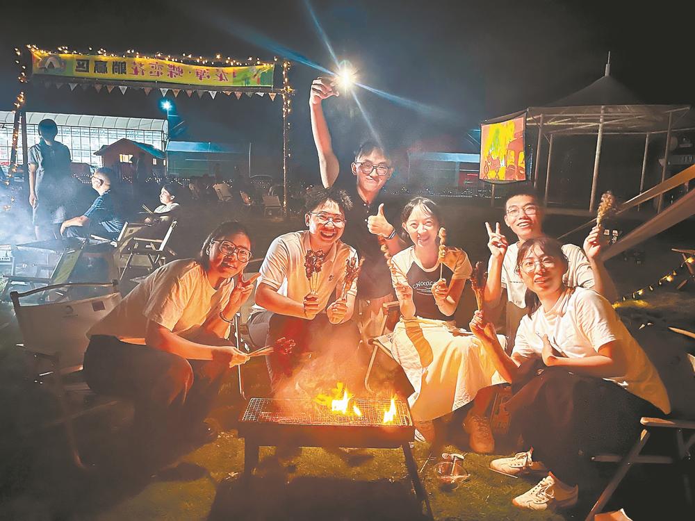 龍巖市永定區(qū)在蝴蝶蘭產(chǎn)業(yè)園中打造“蝶戀花”露營地,并于8月投入運營。圖為游客在其中露營聯(lián)歡。黃秋萍 盧燁 攝