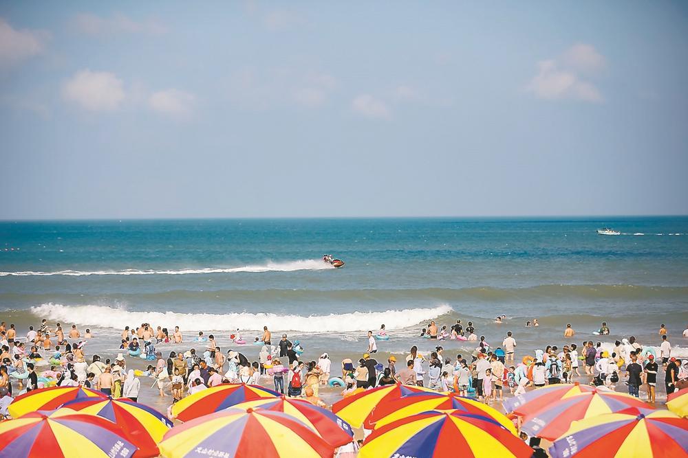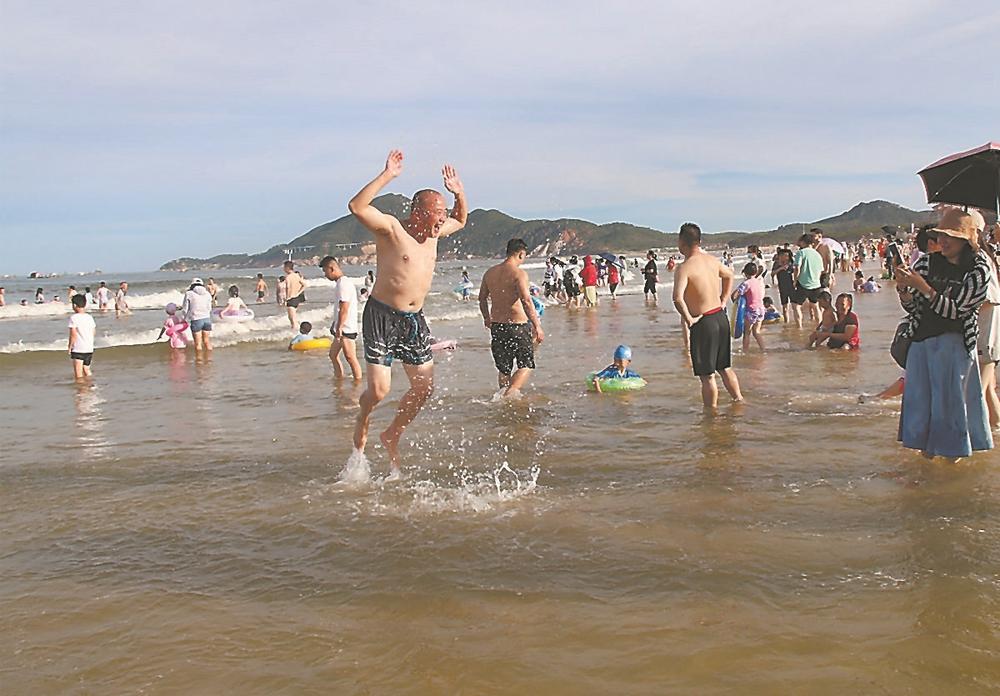 今年,東山縣全面提升濱海旅游“十大景區(qū)”,打造一批旅游新亮點。圖為今年暑期,游客在金鑾灣沙灘中嬉水。 謝漢杰 攝
