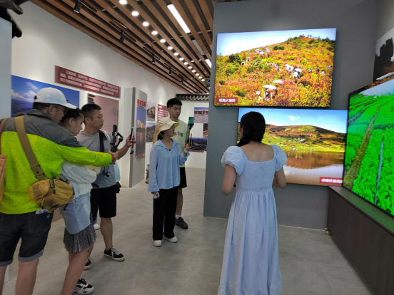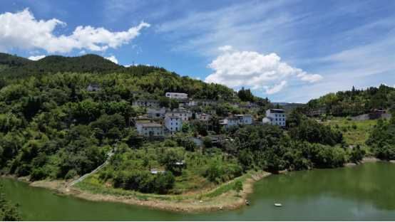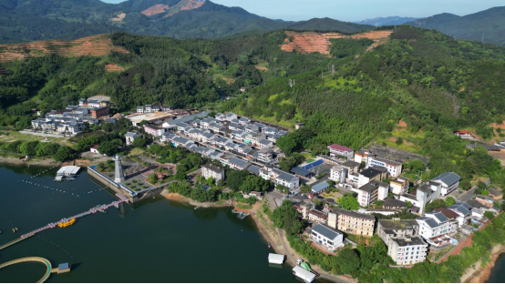 新華村風光 東南網周瑞欽 攝 主播們跟隨泮洋鄉文旅干部黃曉榕,迎著清爽的湖風,沿著臨湖棧道向上走,觀賞村內的自然景觀,前往十三都移民文化展示館和古民居深入了解新華村的移民文化。