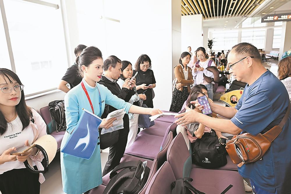 廈航地服工作人員為“廈門(mén)—馬累”航線旅客發(fā)放手機(jī)防水袋與鑰匙扣伴手禮。 東南網(wǎng)7月31日訊 (福建日?qǐng)?bào)記者 鄧婕 田圓 通訊員 張煒康 文/圖) “馬爾代夫,我們來(lái)啦!”在登機(jī)口前,歡呼聲與笑聲此起彼伏,在熱烈的氛圍中,旅客朋友紛紛在“廈門(mén)—馬爾代夫正式啟航”的橫幅前打卡合影。 北京時(shí)間7月30日14:30,一架廈航波音787客機(jī)自廈門(mén)啟航,飛向馬爾代夫維拉娜國(guó)際機(jī)場(chǎng),正式宣告廈航“廈門(mén)—馬累”定期航線的開(kāi)啟,這是廈航的首條南亞航線,也是福建首條直飛馬爾代夫的定期航線。 “廈門(mén)—馬累”航線航班號(hào)為MF889/90,以?xún)芍転橹芷冢谝恢転橹芏⒘饕话啵坏诙転橹芩囊话啵コ毯桨酁楸本r(shí)間12:10—21:05,回程航班為22:05—07:00。此前,大多旅客前往馬爾代夫都選擇到上海乘機(jī),隨著“廈門(mén)—馬累”直飛航班的開(kāi)通,福建旅客將至少省去3小時(shí)的行程時(shí)間,還可節(jié)省20%~30%的出行費(fèi)用。同時(shí),從北京、昆明、成都,長(zhǎng)沙、杭州等地的旅客通過(guò)廈航自廈門(mén)中轉(zhuǎn)到達(dá)馬爾代夫,可享受廈航在廈門(mén)機(jī)場(chǎng)的“通程中轉(zhuǎn)”服務(wù),收獲更加便捷高效的中轉(zhuǎn)體驗(yàn)。 為保障該航線順利開(kāi)通,高崎邊檢站提前部署優(yōu)化勤務(wù)方案,與機(jī)場(chǎng)、航空公司等口岸單位加強(qiáng)溝通,密切關(guān)注航班動(dòng)態(tài),根據(jù)航班、旅客實(shí)時(shí)情況及時(shí)調(diào)整工作預(yù)案,科學(xué)配置執(zhí)勤警力,開(kāi)足查驗(yàn)通道,落實(shí)落細(xì)查驗(yàn)措施,優(yōu)化工作流程,提高通關(guān)效率,為旅客營(yíng)造舒適、快捷、高效的通關(guān)環(huán)境,全力保障出入境人員順暢通關(guān)。 |