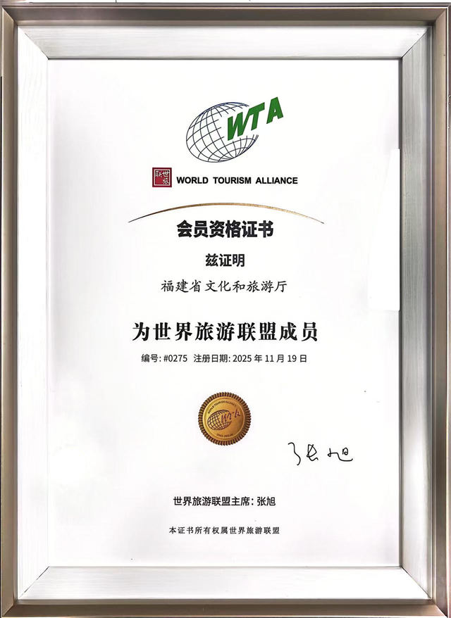 世界旅游聯盟作為全球旅游業的重要組織,肩負旅游促進和平、旅游促進發展、旅游促進減貧的使命,致力于深化國際旅游交流與合作,推動全球旅游業互聯互通和共享共治,促進全球旅游業可持續發展。此次年會審議通過了來自中國、土耳其、阿聯酋、肯尼亞等7個國家和地區的15家機構加入聯盟。新會員涵蓋社會組織、城市和企業三大類別,福建省文化和旅游廳與澳門休閑旅游服務創新協會、土耳其旅游促進和發展局等7家單位共同入選社會組織類會員。省文旅廳副廳長肖長培上臺獲頒會員證書。 福建省山海交融、人文薈萃,素有“山海畫廊、人間福地”的美譽,森林覆蓋率連續46年位列全國首位,是中國大陸最綠的省份,水、大氣、生態環境連年保持全優,是中國東南沿海的一顆璀璨明珠。擁有武夷山、福建土樓、(泰寧)丹霞、鼓浪嶼:歷史國際社區、“泉州:宋元中國的世界海洋商貿中心”等5處世界遺產,南音、媽祖信俗等10項人類非物質文化遺產名錄,位居全國前列。海絲文化、閩南文化、客家文化、茶文化、媽祖文化、朱子文化、閩都文化、船政文化等地域特色鮮明,官洋村是2025年“世界最佳旅游鄉村”,首屆“東亞文化之都”泉州市近日又獲得“世界美食之都”殊榮。