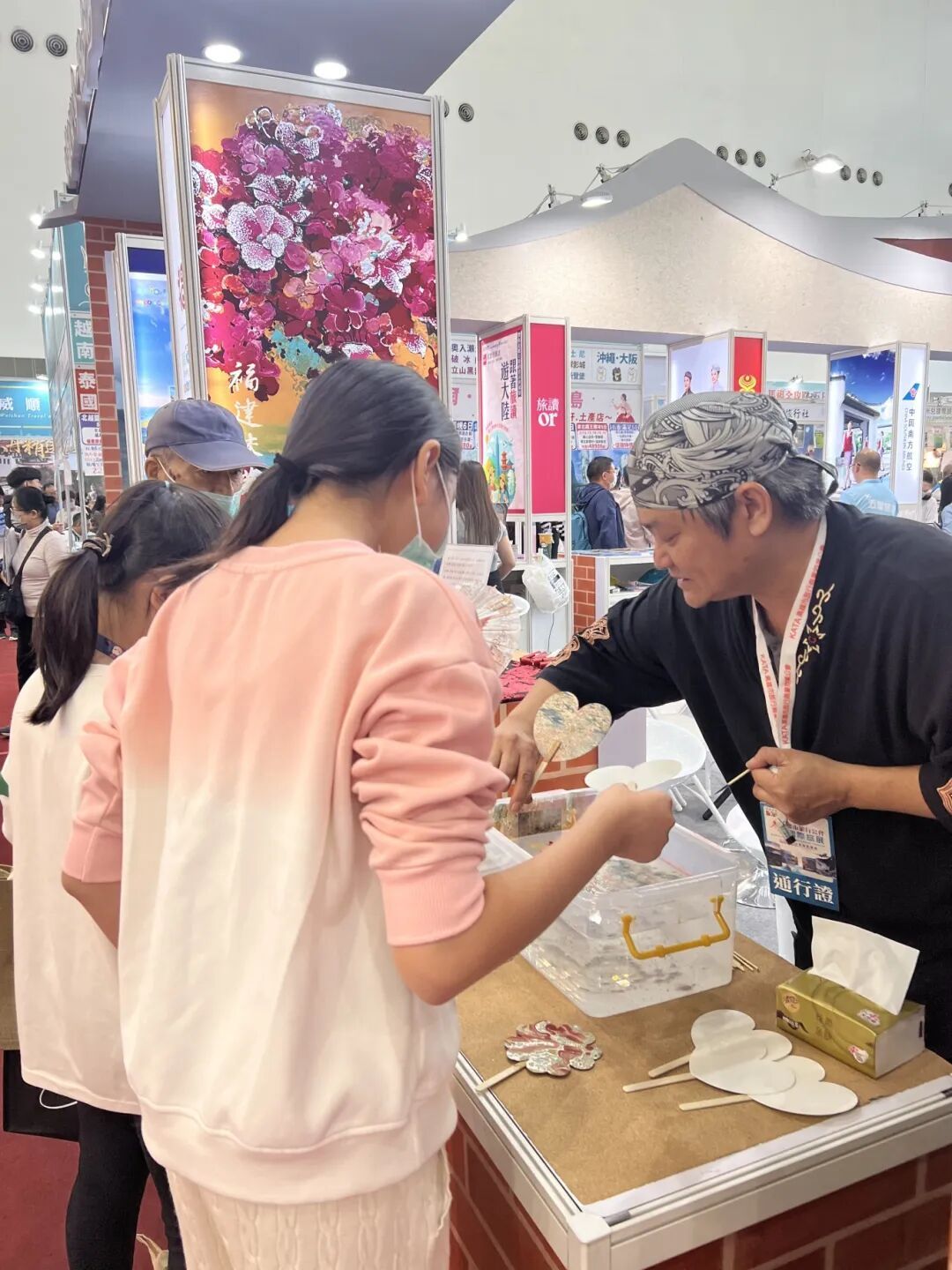 在主舞臺推介環節,海旅會展區特別增加展現閩臺兩地非遺代表性傳承人融合成效的表演節目與手作體驗項目,包括有南音彈唱、京劇小生武戲和布袋木偶戲表演,以及傳統漆扇制作。