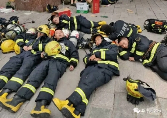 在困難面前,他們依舊奮勇向前 在危險(xiǎn)面前,他們必然義無反顧 史上“最黑”消防員 7 月 22 日,福州某發(fā)電有限公司, 一工人在作業(yè)時(shí)手被卡住, 福州福清市消防特勤中隊(duì), 立即趕赴現(xiàn)場救援。 接近兩個(gè)小時(shí)的救援結(jié)束后, 所有人都跟從墨汁里撈出來一樣, 摘下面罩咧嘴一笑, 整張臉幾乎只有牙齒是白的。 ? “集合列隊(duì),報(bào)數(shù),再報(bào)一下名字。” 指揮員鄭其偉已經(jīng)認(rèn)不出 眼前的隊(duì)員到底是誰。 ? 他們將守護(hù)人民的生命財(cái)產(chǎn)安全 作為最崇高的使命! 這個(gè)夏天的消防是真的很出彩! 最艱苦的救援路 9 月 2 日,云南省文山州麻栗坡縣 猛硐瑤族鄉(xiāng)境內(nèi)普降暴雨, 消防員在救援途中經(jīng)過一個(gè)塌方造成的泥潭, 最深的地方齊腰,無法行走, 消防員奮力爬過泥潭, 經(jīng)過簡單清洗后又馬上趕往救援地點(diǎn)。