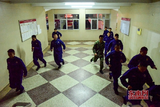 警鈴一響,隊員們就用最快的速度沖下樓,這是他們最為平常的工作狀態。即使沒有出警,也要經常進行演練,時刻保持著戰斗狀態。東南網記者 林婕攝