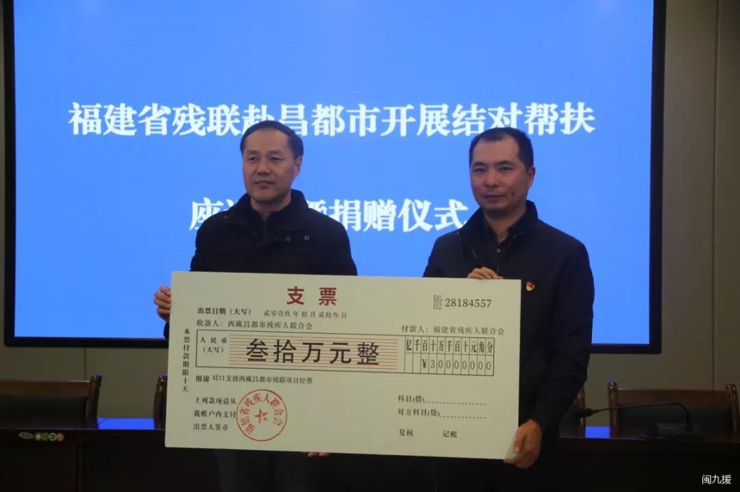 福建省殘聯向昌都市殘聯捐贈30萬元