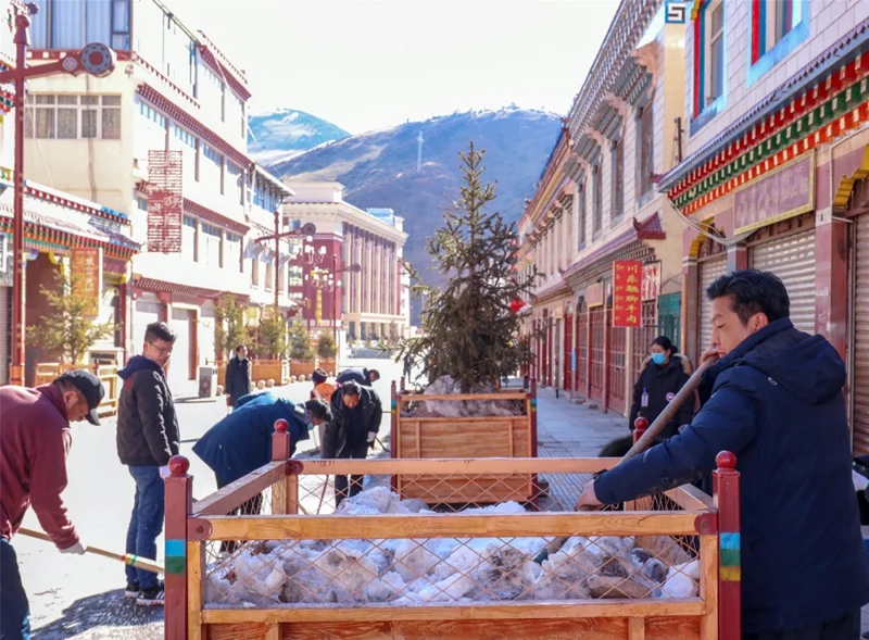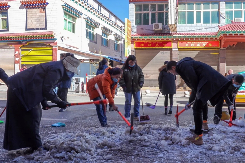 3月14日,來自昌都各行業、各戰線的志愿者根據衛生責任區實際,采取分時、分批的方式,對街道、社區、河道等地進行全天環境衛生整治活動。