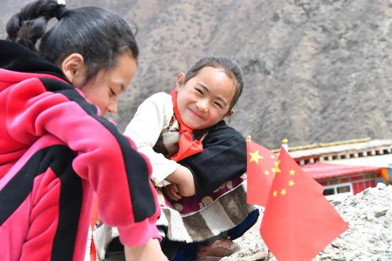 普巴的孫女面對鏡頭露出燦爛的笑容。 “1959年西藏民主改革前,農奴只是‘會說話的工具’;民主改革后,我們全村人都分到土地,當時我們家有五口人,分到九畝地、三頭黃牛,也分到草場。中國共產黨帶領我們過上了幸福的生活!”有著50年黨齡的他,一大早就帶著孫子、孫女來到天臺,換上新國旗,慶祝西藏百萬農奴解放紀念日。