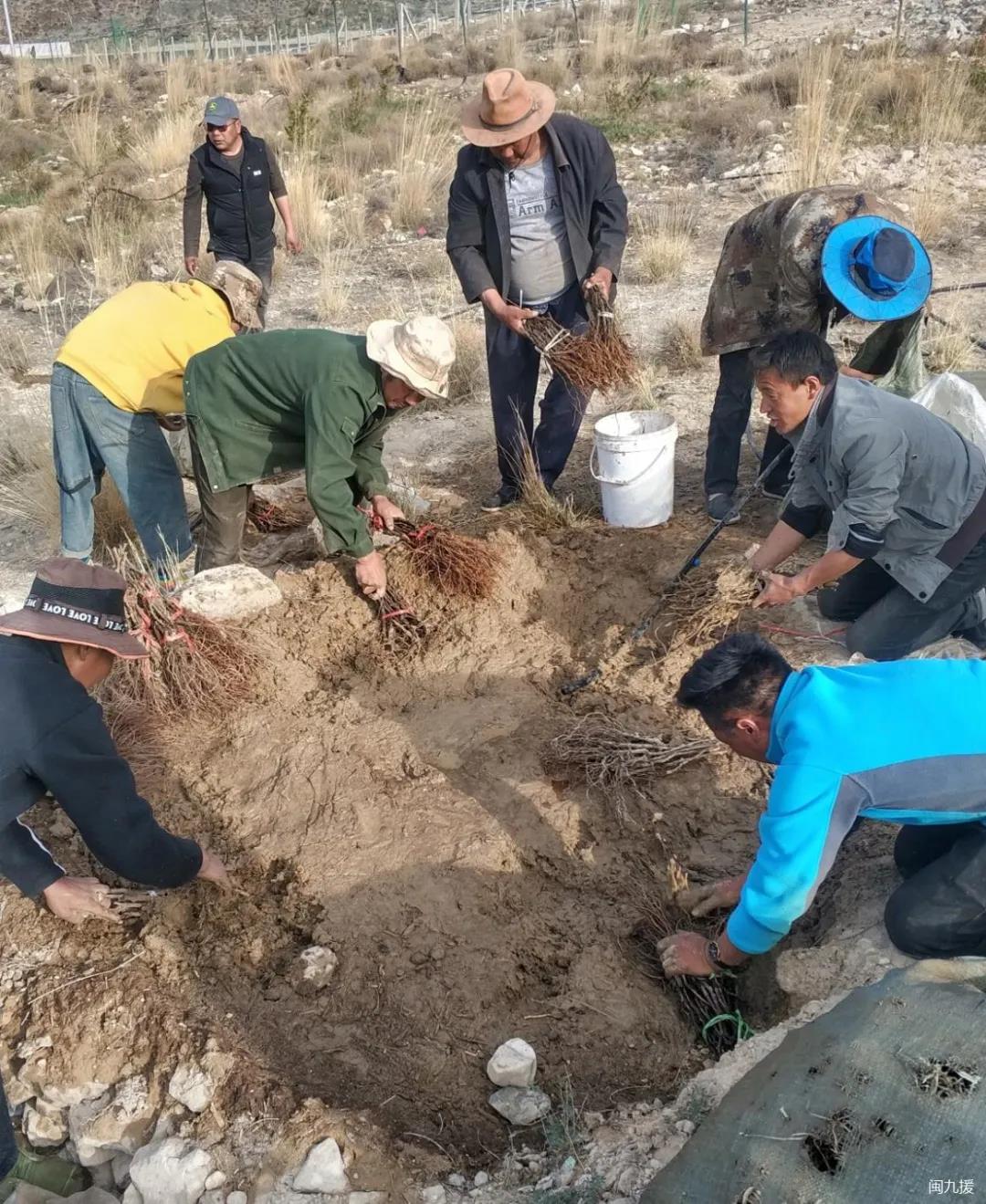 ▲在新拓展的葡萄種植基地指導農牧民沾泥漿泡苗。 福建第九批援藏隊供圖