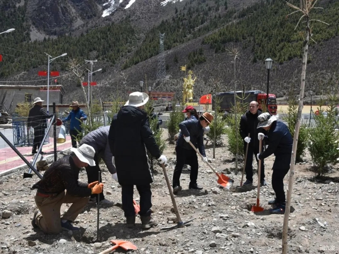 9日,邊壩縣委副書記陳良斌,邊壩縣委常委、常務副縣長張志祥帶領福建省第九批援藏工作隊邊壩工作組隊員和邊壩縣中學5名援藏教師,來到邊壩縣拉孜鄉格薩爾王廣場,與拉孜鄉、村各族干部群眾40多人一同種下500余棵云杉。邊壩縣委副書記、組織部長李紅軍,邊壩縣委常委、副縣長楊勝展,邊壩寺管會主任姚世洪等縣領導一同參加植樹。 活動現場,各族干部群眾分工協作、相互配合,卯足了勁、揮鍬鏟土,挖坑、扶苗、培土、澆水,一片熱火朝天,種下一棵棵見證民族團結友誼的樹苗,為格薩爾王廣場增添了一片生機勃勃的綠色。植樹活動中,邊壩工作組隊員與拉孜鄉各族干部群眾聊著家常,進一步增進了友誼。此次活動是閩九援邊壩工作組開展“民族團結一家親”系列活動的內容之一。