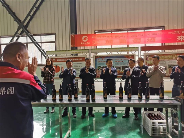 圖片來源:福建第九批援藏隊 儀式現場,西藏成功紅天麓酒莊有限公司負責人簡要介紹了葡萄酒莊的基本情況。魏東對左貢縣葡萄產業發展取得的成績給予了充分的肯定,對西藏成功紅天麓酒莊有限公司今后的發展給予了充分的信心,并表示將充分發揮援藏優勢,大力支持左貢葡萄產業發展。隨著葡萄酒灌裝生產線的啟動,西藏成功紅天麓酒莊有限公司正式投產運營,目前,每小時可批量生產葡萄酒500件3000瓶,今年可實現生產葡萄酒120000斤。 在援受雙方的大力支持和積極協調下,福建援藏隊2019年成功引進廈門成功紅實業集團有限公司落戶左貢,并投資建成西藏成功紅天麓酒莊有限公司。該公司坐落于昌都市左貢縣夯達產業園區(國道318線3556公里處,海拔高度3911米),于2019年4月正式開工建設一期工程,項目總投資3億元,用于規范管理中林卡萬畝有機葡萄種植園基地和夯達產業園區天麓酒莊兩萬平方米綜合體(包括葡萄酒廠、生態酒莊、葡萄酒文化展示中心、專家科技樓、其他配套服務設施),可進行葡萄發酵、壓榨和葡萄酒生產、包裝、展示、銷售等。