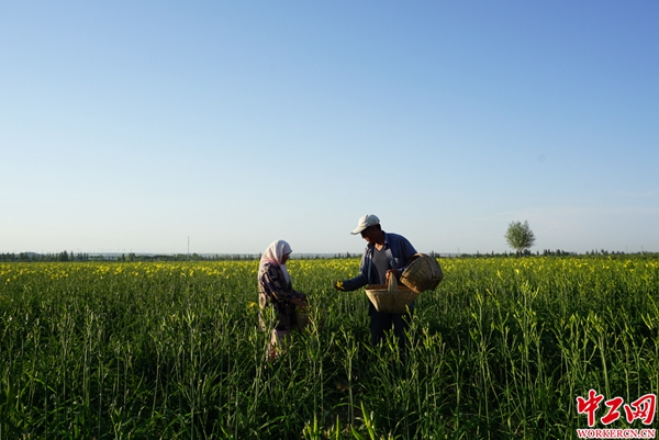 村民采摘黃花菜 韓瑞敏 攝 因地制宜發展黃花菜產業 讓百姓“忘憂” 黃花菜又名金針菜、“忘憂草”,因具有很高的營養價值和藥用功能而廣受人們喜愛。紅寺堡區于2002年從甘肅引進黃花菜苗在興民村試種,先后又從湖南、陜西、甘肅等地引進多個品種,通過幾年的品種對比,甘肅、陜西的大金條和大烏嘴兩個品種產量高、商品性好,適宜在紅寺堡區大面積種植。黃花菜因此成為紅寺堡區農作物結構調整、農民增收的優勢特色節水作物。據了解,紅寺堡區重點打造了黃花菜千畝以上標準化示范點21個,其中兩千畝以上11個,三千畝以上5個,先后共培育黃花種植專業合作社12家,新建加工企業3家,注冊了“興茗萱”“立弘”兩個品牌,2019年又注冊了“塞上陽光”紅寺堡富硒黃花菜公共品牌,目前帶動建檔立卡貧困戶2200戶種植黃花菜16695.77畝。由于紅寺堡地處寧夏中部干旱帶核心區,光照時間長、晝夜溫差大、土壤無污染、硒元素含量高,該區所產黃花菜色澤黃亮、條長肉厚、久煮不爛、品質上乘,特別是油性大、富硒含量高,營養豐富。中國合作經濟學會會長孫中華在中國寧夏(紅寺堡)富硒黃花菜產業科技高峰論壇上表示:“沒想到黃花菜產業在寧夏發展的這么好,這里的黃花菜品相好、品質高,在全國都名列前茅。” 近年來,隨著黃花菜面積和產量增加,其在農作物中的比較效益凸顯,黃花菜產業已經成為紅寺堡區廣大農民群眾脫貧致富路上的金條產業。