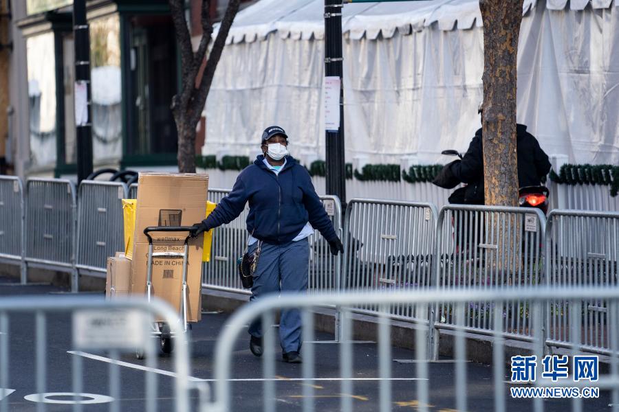 1月18日,在美國華盛頓,一名戴口罩的工作人員為總統就職典禮作準備。