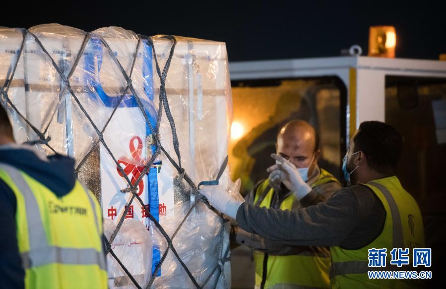 2月23日,在埃及開羅國際機場,工作人員運輸疫苗。新華社記者 鄔惠我 攝 廖力強表示,中國援埃疫苗順利交接是落實兩國元首對中埃抗疫合作重要共識的有力舉措,是中阿、中埃共建衛生健康共同體的生動詮釋,是雙方朝著新時代構建命運共同體邁出的又一堅實步伐。他表示,援助疫苗是落實中方關于把疫苗作為全球公共產品重要宣示的實際行動。中方愿繼續為埃方提供力所能及的支持和幫助,希望埃及早日戰勝疫情,全面恢復經濟社會生活正常秩序。