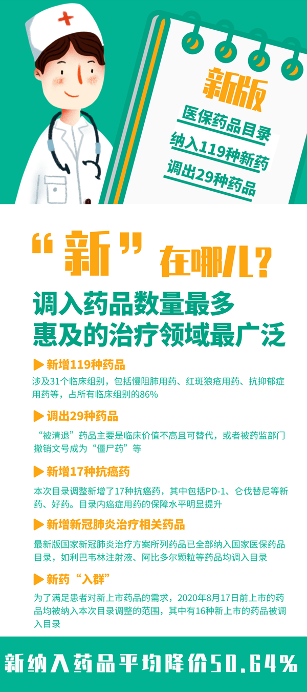 最新版國家醫保藥品目錄于3月1日正式啟用。經過調整后的醫保藥品目錄,納入119種藥品,調出29種藥品。 清退“僵尸藥”、新增抗癌藥、覆蓋新冠肺炎治療相關藥品、新納入藥品平均降價50.64%……最新版醫保藥品目錄再次體現“保基本”的功能定位,推動實現醫保、企業、患者“三方共贏”。 新冠肺炎用藥全部納入醫保 與往年相比,本次醫保藥品目錄調整看點之一是談判降價調入的藥品數量最多、惠及的治療領域最廣泛。 新增119種藥品。這些藥品共涉及31個臨床組別,包括慢阻肺用藥、紅斑狼瘡用藥、抗抑郁癥用藥等,占所有臨床組別的86%,患者受益面非常廣泛,其獲得感更加強烈。 新增新冠肺炎治療相關藥品。最新版國家新冠肺炎治療方案所列藥品已全部納入國家醫保藥品目錄,如利巴韋林注射液、阿比多爾顆粒等藥品均調入目錄,用以應對新冠肺炎疫情。 新增17種抗癌藥。本次目錄調整新增了17種抗癌藥,其中包括PD-1、侖伐替尼等新藥、好藥。目錄內癌癥用藥的保障水平再次提升。 調出29種藥品。這些“被清退”藥品主要是臨床價值不高且可替代,或者被藥監部門撤銷文號成為“僵尸藥”等。在論證與評審中,專家們將可替代性作為一項重要指標,被調出的藥品在目錄內均有療效相當或者更好的藥物可供替代。這些藥品的調出,將為更多新藥、好藥納入目錄騰出空間。 新藥“入群”。為了滿足患者對新上市藥品的需求,2020年8月17日前上市的藥品均被納入本次目錄調整的范圍,其中有16種新上市的藥品被調入目錄。 可以看出,這次醫保藥品目錄調整納入性價比高的藥品、調出臨床價值不高的藥品、全覆蓋治療新冠肺炎相關藥品,其重點依舊放在“保基本”,提高患者用藥的可及性。 新納入藥品平均降價50.64% 國家醫保局相關負責人表示,談判成功的119種藥品,平均降價50.64%。從患者負擔情況看,通過談判降價和醫保報銷,預計2021年可累計為患者減負約280億元。 本次目錄調整首次對目錄內的“老品種”進行降價談判。評審專家經過論證,將價格或費用明顯偏高的14種目錄內藥品納入談判范圍,這些藥品單藥的年銷售金額均超過10億元。經過談判,14種藥品均談判成功并保留在目錄內,平均降價43.46%。 與新準入目錄的藥品相比,一些“老品種”出現了價格“倒掛”現象,對“老品種”進行再談判,有利于提高藥品經濟性與公平性,也能夠切實減輕患者負擔,提升醫保資金的使用效益。 針對2020年底協議到期的目錄內抗癌藥品,國家醫保局對14種獨家藥品按規則進行續約或再次談判,平均降幅為14.95%,其中個別一線抗癌藥降幅超過60%。經測算,14種抗癌藥降價,預計2021年可為癌癥患者節省30余億元。 國家醫保局醫藥服務管理司司長熊先軍說,在醫保基金安全總體可控的前提下,醫保基金支出沒有明顯增加,參保患者的藥品支出明顯節省,醫保藥品保障能力和水平得到提升。 多地醫保藥品目錄調整 參照最新版醫保藥品目錄,全國多地陸續發出與2020新版國家藥品目錄落地執行相關的文件,以及地方增補藥品目錄的相關通知。 如北京醫保藥品目錄已經將新增的119種藥品全部納入。并對門診特殊疾病的藥品報銷品種進行調整完善,將許多新增藥品納入門診特殊疾病報銷,例如將新增藥品 “西尼莫德”和“芬戈莫德”納入“多發性硬化”門診特殊疾病藥品報銷范圍等。此外,還將“澤布替尼”等19種其他新增藥品納入北京市惡性腫瘤等門診特殊疾病藥品報銷范圍。 除了對談判藥品和高值藥品實行統一分類管理,四川省還將德谷門冬雙胰島素等12個談判藥品納入省城鄉居民糖尿病門診用藥范圍。 隨著新版醫保藥品目錄的落地,國家醫保局還將指導定點醫療機構形成聯動,及時優化升級機構配備、使用的藥品,提升臨床用藥水平,并指導各地通過完善門診保障政策、開通醫保定點藥店通道、合理調整總額控制等方式,推動新版目錄內藥品落地。 |
