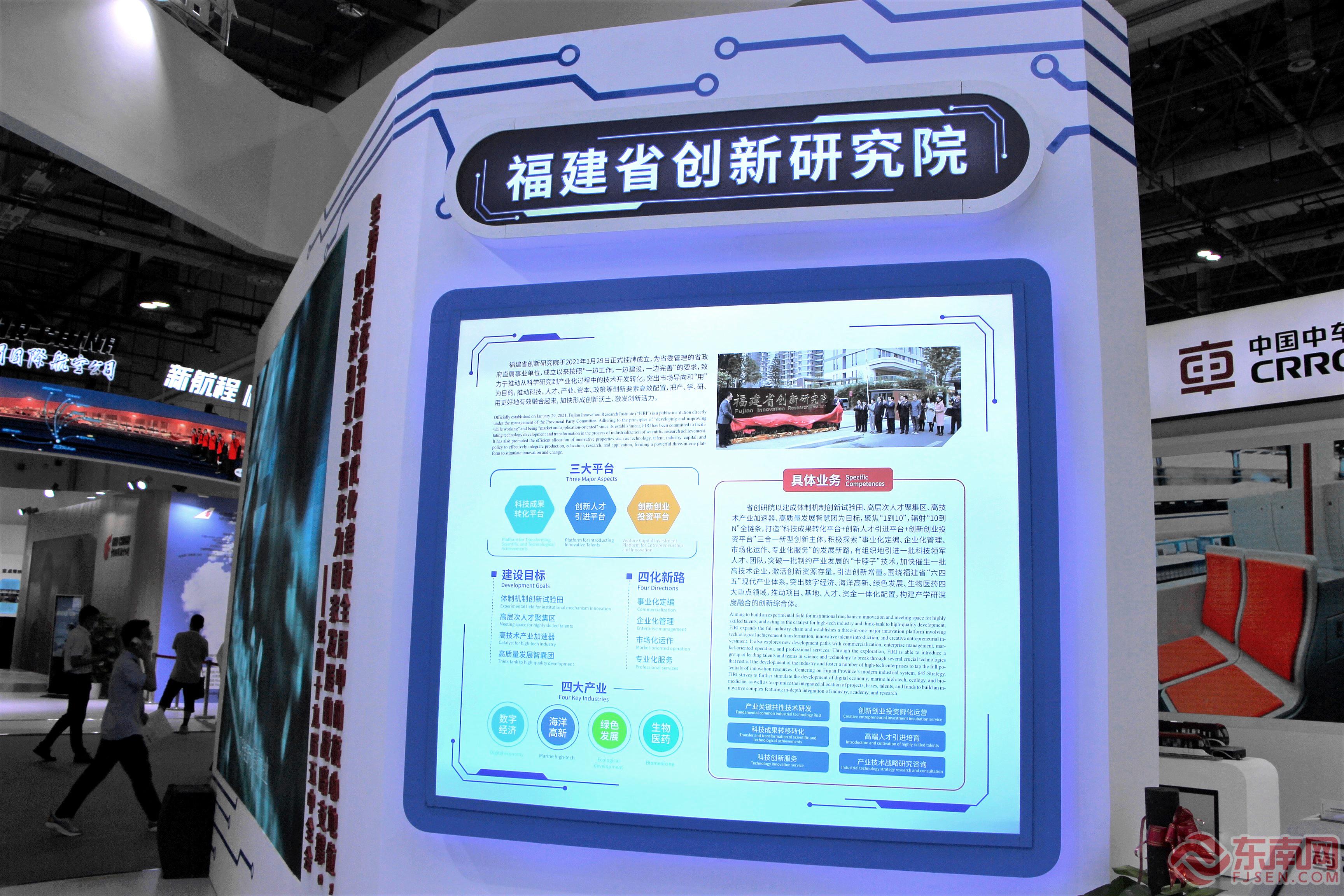 省創(chuàng)新研究院展區(qū) 東南網(wǎng)記者盧金福 攝 省創(chuàng)新研究院本部板塊:介紹省創(chuàng)新研究院的成立背景、建設(shè)目標(biāo)和具體業(yè)務(wù)等概況。