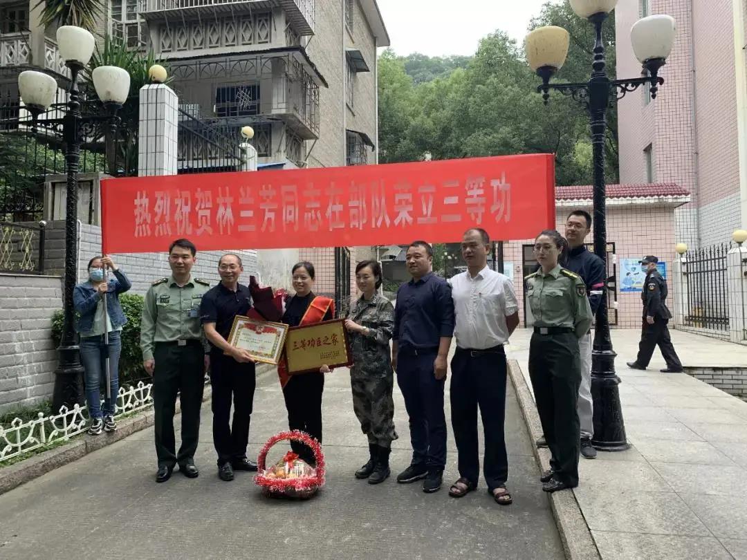 慰問組一行與林蘭芳家人親切交談對林蘭芳在部隊立功受獎表示祝賀,家人接到喜報后感到無比光榮和自豪。