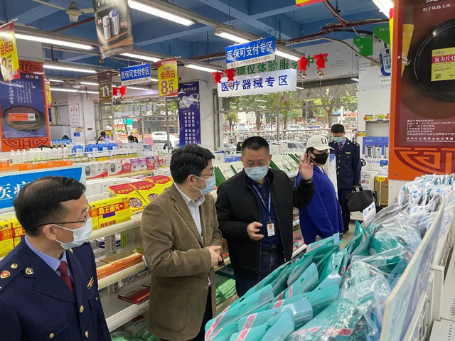 為進(jìn)一步做好疫情防控期間防疫物資和重要民生商品市場(chǎng)價(jià)格監(jiān)管工作,3月22日,由省市場(chǎng)監(jiān)管局黨組成員、副局長(zhǎng)劉先義帶隊(duì),省市場(chǎng)監(jiān)管局聯(lián)合福州市和鼓樓區(qū)、晉安區(qū)市場(chǎng)監(jiān)管局前往市區(qū)商超、藥店和醫(yī)藥公司開(kāi)展市場(chǎng)價(jià)格巡查。