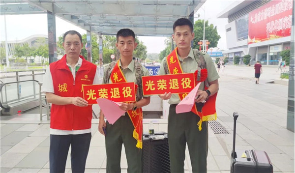 在莆田動車站出站口設立醒目的退役士兵接待服務站,工作人員為剛出站的返鄉退役軍人披綬帶,講解退役士兵返鄉報到須知,宣傳教育培訓和就業創業等政策,為他們提供貼心服務。“我出站后,一眼就看到了迎接我們返鄉的橫幅,很感動!這一刻我才強烈地感受到自己到家了。今后我們也會為家鄉的建設貢獻自己的力量!”老兵說。 龍巖市 顯眼的標牌,繽紛的鮮花,紅色的綬帶……為做好2023年秋季退役士兵返鄉,長汀縣退役軍人事務局精心部署,多措并舉,真正讓退役軍人感受社會的尊崇、享受軍人的榮光,激發退役軍人退伍不褪色、返鄉建新功的壯志和熱情。 “老兵您好!長汀人民歡迎您光榮返鄉!”在退役老兵接站點,長汀縣退役軍人事務局工作人員和汀州退役軍人先鋒大隊熱情招呼出站的每位退役老兵?!皠傋叱龀稣究?,就感受到了家鄉的溫暖!真的讓我們很感動!” 老兵緊緊地擁抱自己的家人激動地說道。 長汀縣汀州退役軍人先鋒大隊隊員與社會愛心人士成立的愛心車隊,到動車南站迎接光榮返鄉退役軍人,免費接送光榮返鄉退役軍人及家屬,將退役軍人送到家門口,打通回家“最后一公里”,積極營造擁軍崇軍濃厚氛圍。 寧德市 9月1日上午,蕉城區委常委、人武部政委林曉光,副區長楊泰,以及區退役軍人事務局相關負責人到寧德動車站熱情迎接秋季首批蕉城籍返鄉退役軍人,為他們送上鮮花、披上綬帶,讓他們感受到“保家衛國熱烈歡送,光榮退伍熱情相迎”的濃烈氛圍。