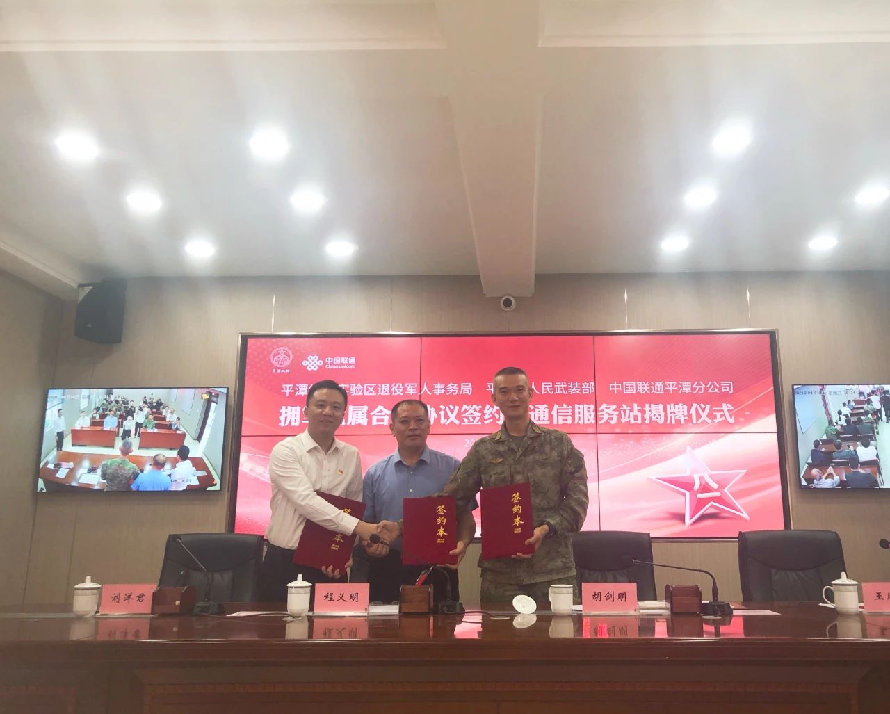 4月18日上午,平潭綜合實驗區退役軍人事務局、平潭縣人民武裝部、中國聯合網絡通信有限公司平潭綜合實驗區分公司舉行擁軍優屬合作協議簽約暨通訊服務驛站揭牌儀式。