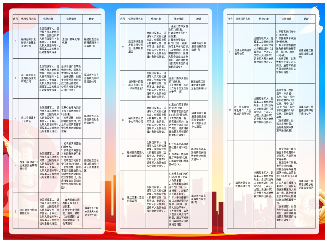 “擁軍大聯盟”單位優待項目(部分) 根據協議內容,“擁軍大聯盟”各成員單位將立足自身行業特點和資源優勢,聚焦現役軍人、退役軍人及家屬的實際需求,在文旅、教育、醫療、餐飲等多個民生領域精準提供 “三優服務”(優質產品、優先待遇、優惠價格),以實打實的優惠來增強軍人軍屬、退役軍人的榮譽感、獲得感與幸福感。自2024年5月連江“擁軍大聯盟”成立以來,社會各界響應熱烈,截至目前,已有24家企業踴躍加入,聯盟的社會影響力與服務覆蓋面持續擴大。 “我們深耕家庭教育領域多年,始終心懷對軍人的敬意,希望通過專業服務為軍人家庭提供更有力的教育支持。”連江行知教育咨詢服務部主理人邵文慧表示 “我十分崇拜軍人,所以這次能加入‘擁軍大聯盟’既喜悅又榮幸。”連江興達汽車培訓有限公司董事長李章財表示,他們計劃為全國現役軍人、退役軍人及其他優撫對象提供駕校培訓8.5折的專屬優惠。 為現役軍人家庭送去立功喜報