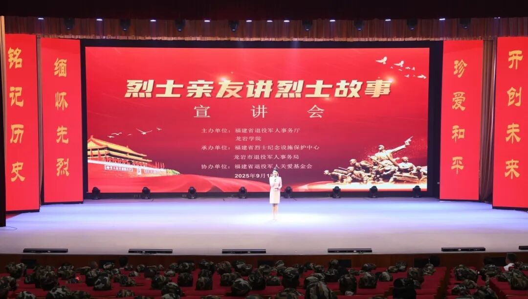 在“九一八”事變爆發94周年、并將迎來第12個國家烈士紀念日之際,9月18日上午,省退役軍人事務廳與龍巖學院舉行廳校共建協議簽約儀式,并開展“烈士親友講烈士故事”宣講活動,以實際行動學習貫徹習近平總書記在紀念中國人民抗日戰爭暨世界反法西斯戰爭勝利80周年大會上重要講話精神,激勵干部群眾和青年學子“銘記歷史、緬懷先烈、珍愛和平、開創未來”。省退役軍人事務廳黨組書記、廳長羅慶春,廳黨組成員、副廳長蔡靜南和龍巖學院黨委書記鐘發亮、校長鄒衛東等廳校雙方領導出席,省退役軍人關愛基金會、省烈士紀念設施保護中心、龍巖市退役軍人事務局相關負責同志、六位烈士親友宣講員,以及龍巖學院師生代表1000多人參加活動。