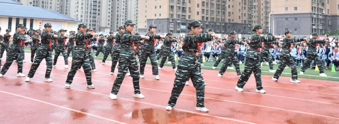實(shí)小百勝校區(qū)校長(zhǎng)董春風(fēng)圍繞“恒潤(rùn)品格、恒勝意志”辦學(xué)理念,介紹軍校成立背景及“國(guó)防教育潤(rùn)心+軍事實(shí)踐強(qiáng)能”目標(biāo),提及軍校建設(shè)得到駐鼎部隊(duì)大力支持,后續(xù)將聯(lián)合開展軍事訓(xùn)練、國(guó)防講座等活動(dòng),以軍地協(xié)作夯實(shí)雙擁教育基礎(chǔ)。 現(xiàn)場(chǎng)為“福鼎市少年軍校”授牌后,校長(zhǎng)為駐校教官頒發(fā)聘書,這些教官均由駐鼎部隊(duì)精心選派,承載著軍民共育的責(zé)任。教官邁正步授校旗,學(xué)員代表接旗后高舉,全體學(xué)員行隊(duì)禮致敬,軍地同心的畫面格外動(dòng)人。校大隊(duì)委陳飄楠帶領(lǐng)學(xué)員宣誓,“熱愛祖國(guó)、尊崇國(guó)防”的誓言響徹校園;某駐鼎部隊(duì)官兵帶來剛勁有力的軍體拳表演,用軍人風(fēng)采點(diǎn)燃少年熱情,更彰顯軍地雙擁共建的深厚情誼。首批學(xué)員隨后展示隊(duì)列、拳術(shù)、槍術(shù)及旗語(yǔ)操、感恩手勢(shì)操,動(dòng)作整齊、氣勢(shì)昂揚(yáng),盡顯“恒勝少年”在雙擁氛圍滋養(yǎng)下的精神風(fēng)貌。