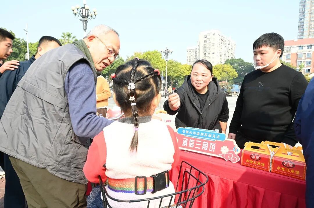 授牌儀式現場,面煎粿、面粉棗、三角餅、咸水鴨等8家商戶代表帶來了豐富的特色小吃。熱氣騰騰的沙茶面、咸香可口的面粉棗、金黃酥脆的三角餅、甜而不膩的豆脯餅香氣四溢,彌漫在古城街巷。現役軍人、退役軍人、應征青年與市民們圍聚在攤位前,一邊品嘗,一邊交談,場面溫馨融洽。
