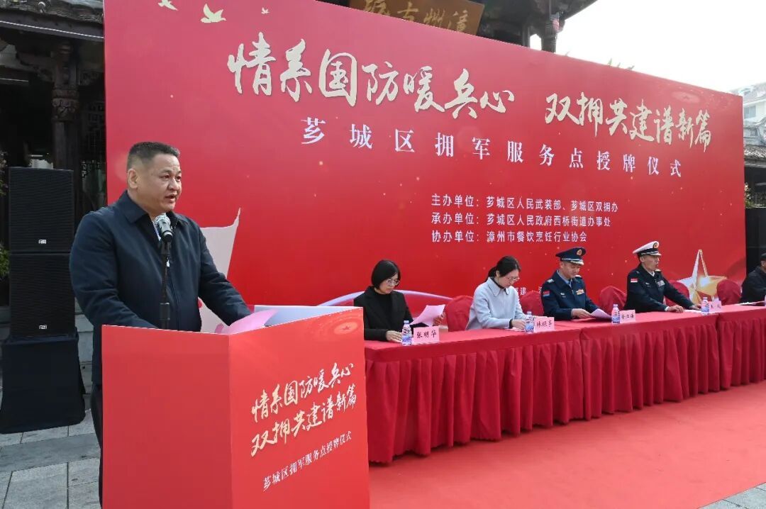 活動現場,市(區)雙擁辦、市餐飲烹飪行業協會、區市場監管局、區退役軍人事務局、鄉鎮(街道)退役軍人服務站等相關部門負責人,與首批授牌的餐飲商戶代表、駐漳部隊官兵及退役軍人代表等百余人齊聚一堂,共同見證這份深厚的軍民魚水情。