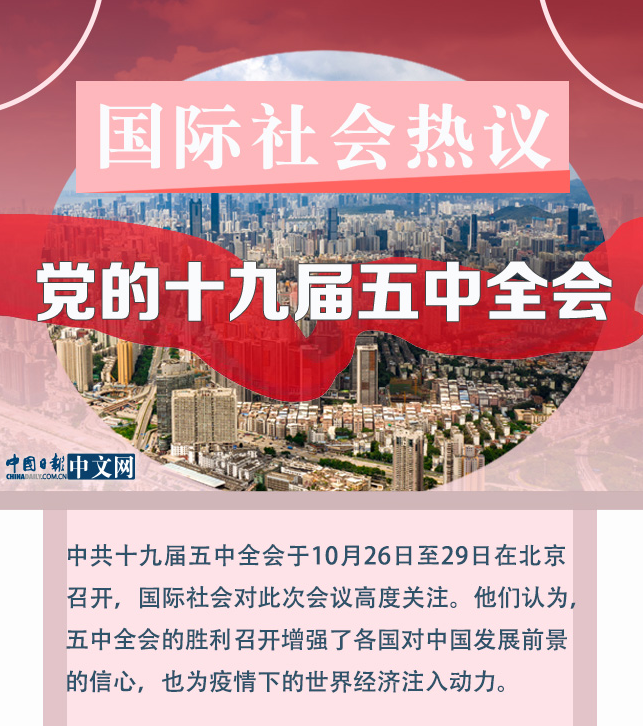 2020年10月26日上午,黨的十九屆五中全會開幕,習(xí)近平總書記受中央政治局委托作工作報告,并就《中共中央關(guān)于制定國民經(jīng)濟和社會發(fā)展第十四個五年規(guī)劃和二〇三五年遠景目標的建議》起草的有關(guān)情況向全會作說明。[詳細]
